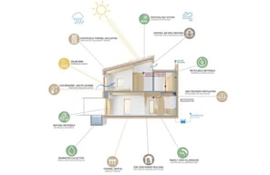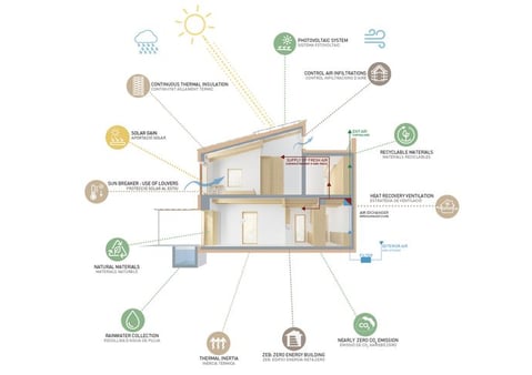 Passive design is a building design strategy aimed at optimizing the structure and design of the building to minimize external energy demands, especially for air conditioning and heating systems. Through carefully designed windows, walls, roofs, and facades, buildings can harness natural resources such as sunlight, natural ventilation, and geothermal energy to maintain a comfortable indoor temperature, significantly reducing energy consumption.