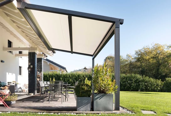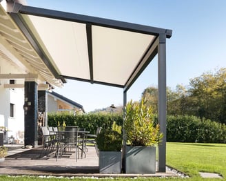 With a remote control, you can easily manage awnings, Shadeplus, light, and heat at the touch of a button. Radio-controlled awnings provide maximum convenience, allowing you to operate them from inside.